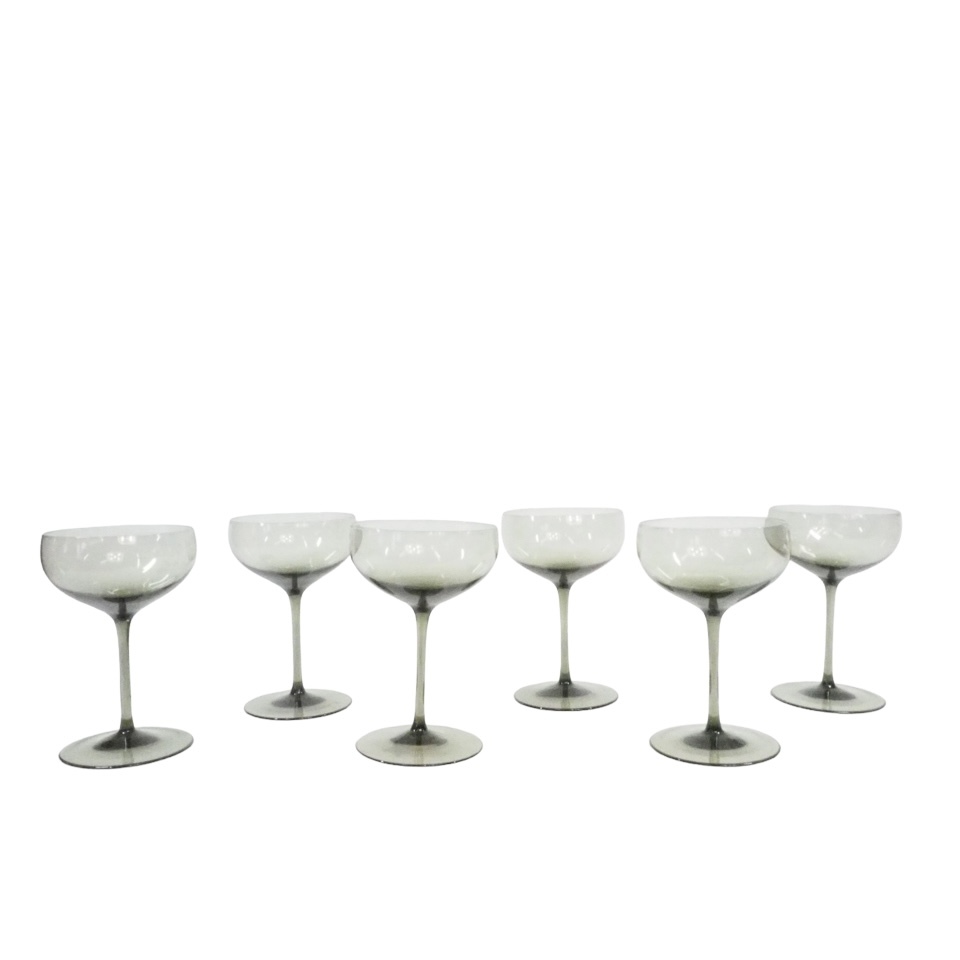- 美しい意匠!昭和期ビンテージ ガラス製 シャンパングラス 6客セット メーカー不詳 シャーベットグラス SHI605