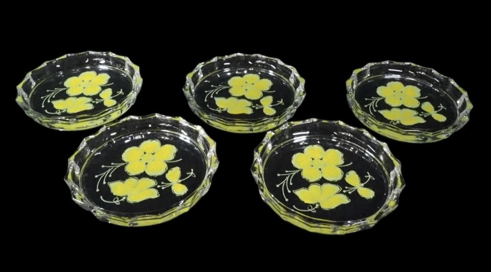 - レトロポップな可愛らしいガラス食器!昭和レトロ 佐々木硝子 緑花柄ガラスコースター5枚セット 豆皿 佐々木ガラス 1970年代 SHI605