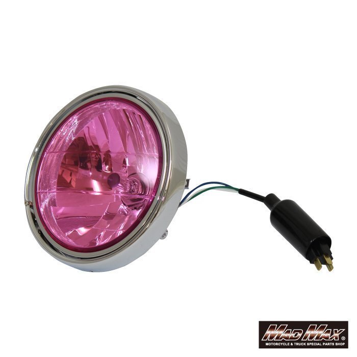 > MADMAX バイク用品 KAWASAKI カワサキ車用 φ180 マルチリフレクター ヘッドライト ピンクレンズ/ゼファー ZRX ZR750C ZR250【送料800円】