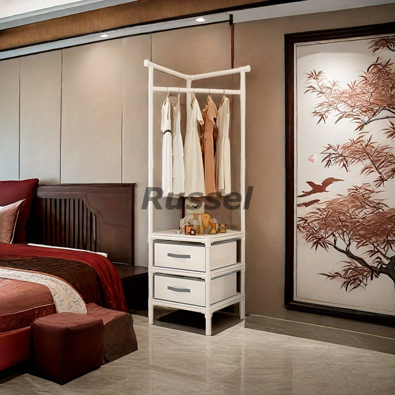 - ハンガー ラック 多機能 2段 引き出し 付き シンプル おしゃれ かわいい インテリア 衣類 コート ハンガー スリム コンパクト 収納 白 4-7