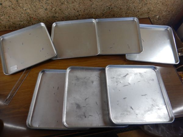 - 学校給食 アルミトレー ランチ お盆 7枚まとめて 日本製 JAPAN 34.5x34.5x2cm 昭和レトロ
