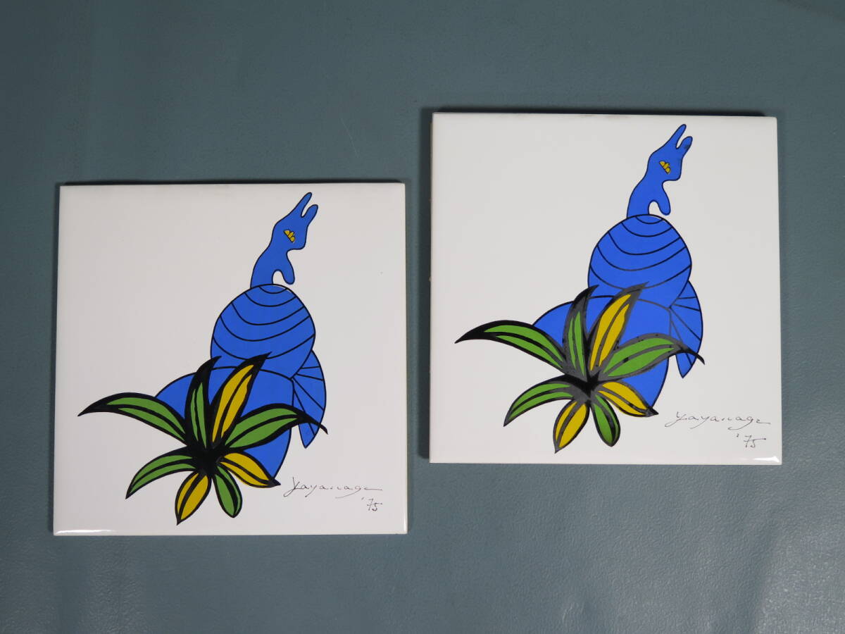 - 矢柳剛 タイル 2枚セット 動物画 青鳥 現代画★美品
