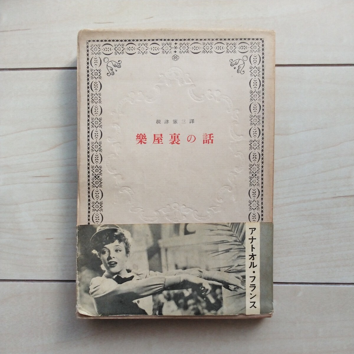 > ■飜譯權所有『樂屋裏の話』AnatoleFrance著。根津憲三譯。A.France長篇小説全集13。1950年初版帯。株式會社白水社發行。