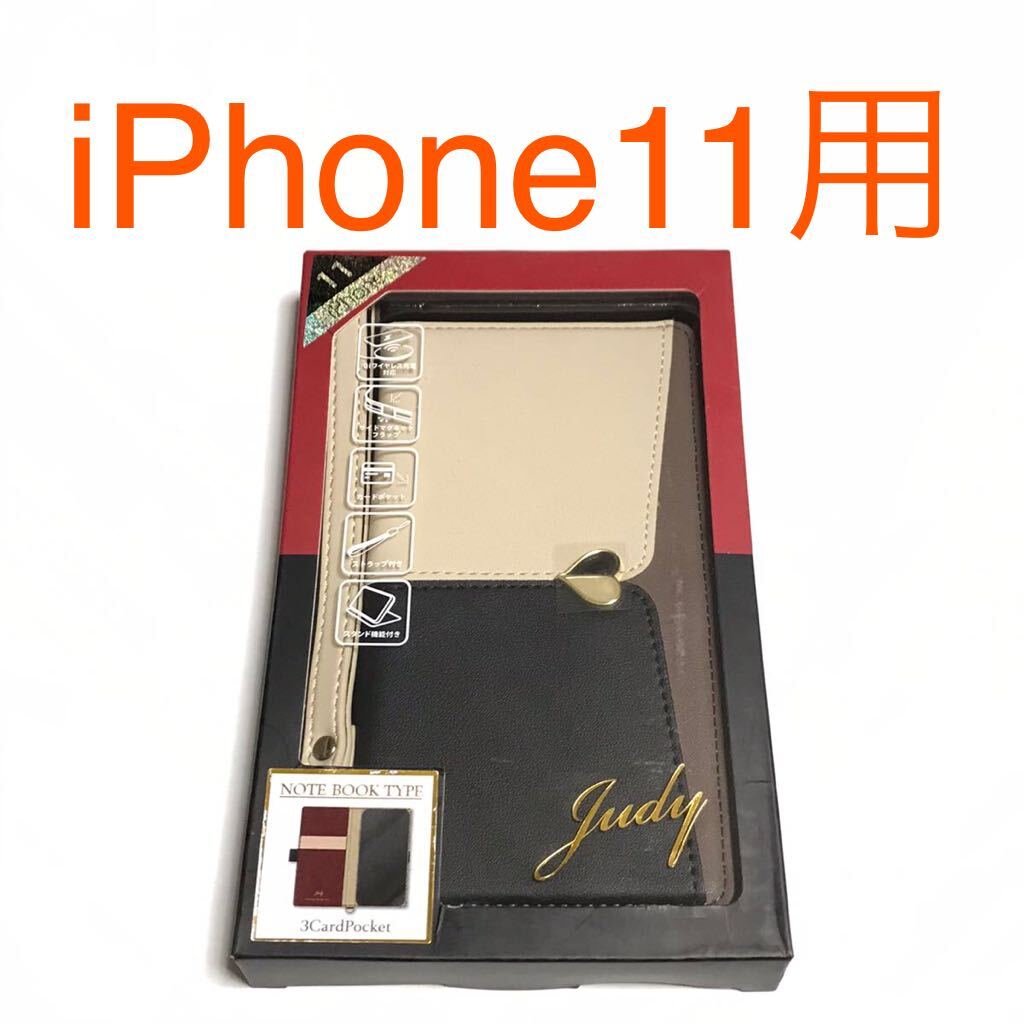 匿名送料込み iPhone11用カバー 手帳型ケース お洒落 judy ベージュ ブラック ストラップ スタンド機能 アイホン11 アイフォーン11/WC7