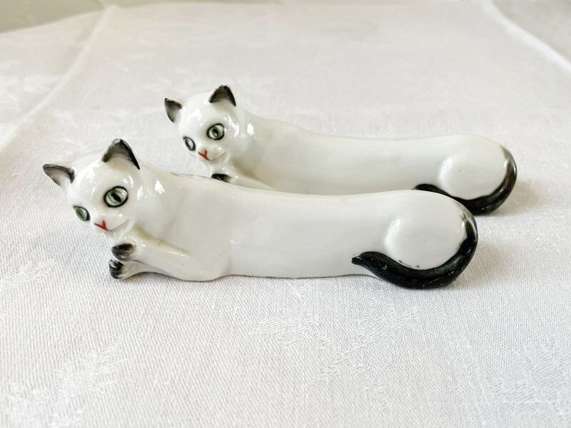 - ドイツ アンティーク ナイフレスト 1920s 陶器 ペア 猫 シャムネコ フィギュア