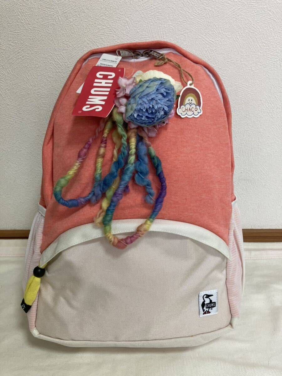 - 【新品】今回だけ CHUMS× CHACOコラボ スウェット地ディパック ピンク/白 市価1.5万円 売り切れ 希少 お洒落 使える 激安!
