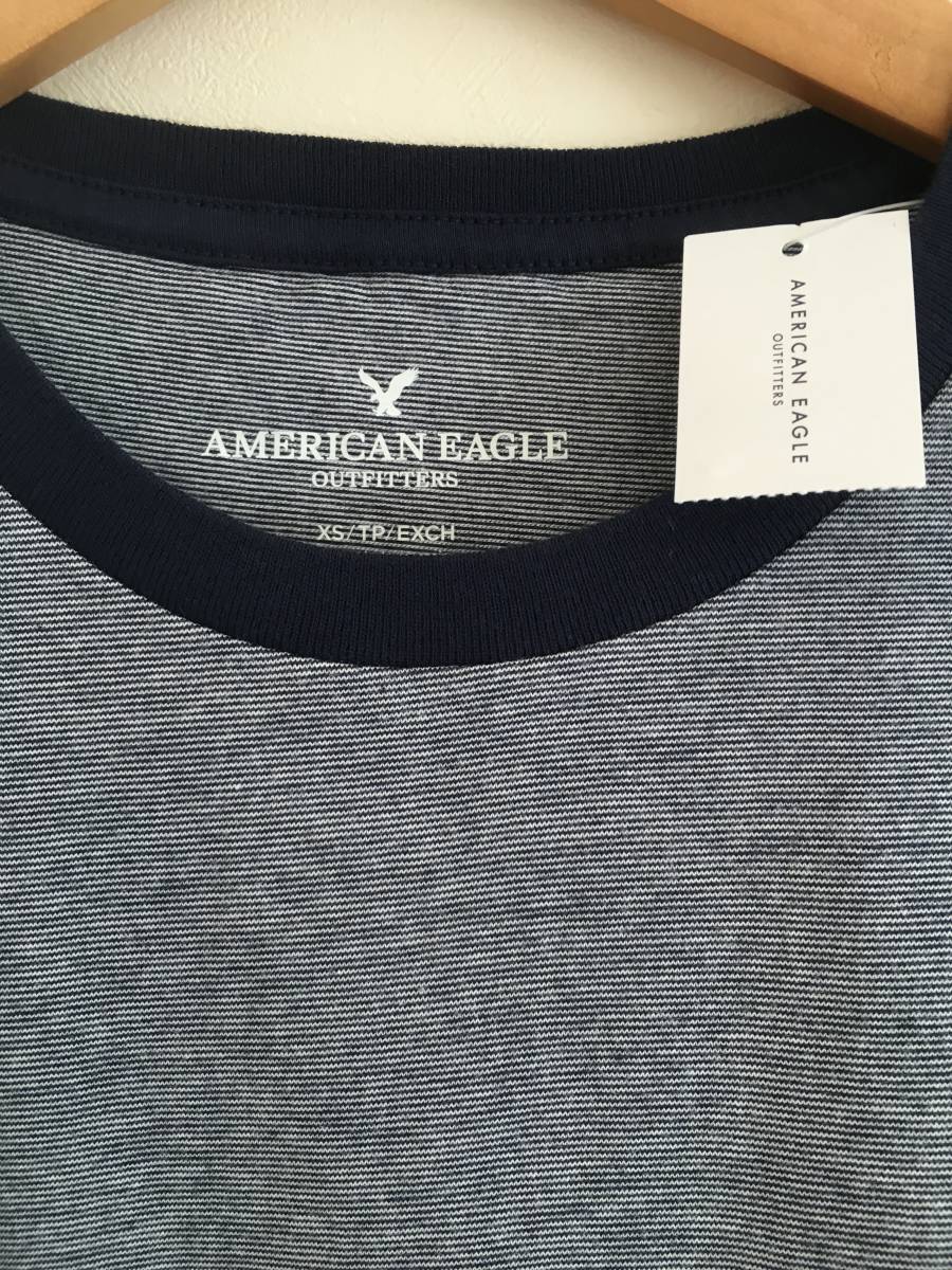 - セール! 残りわずか! 正規品 本物 新品 アメリカンイーグル 着心地抜群 綿100% Tシャツ AMERICAN EAGLE クール! ブルー ストライプ XS ( S