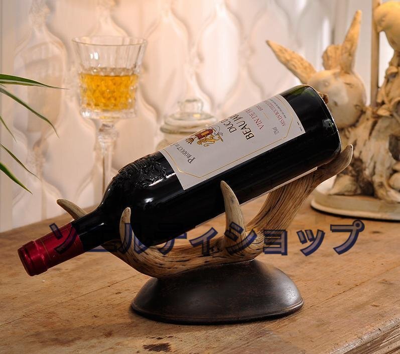 - ワインボトルホルダー 鹿の角 ヨーロピアン風 アンティーク調 樹脂製
