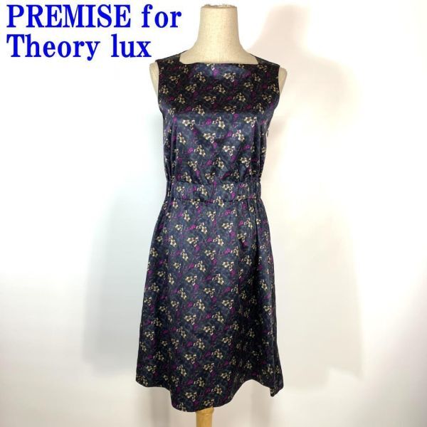 - プレミスセオリーリュクス ロングワンピース 綿 総柄 紺PREMISE for Theory lux コットン ネイビー 紫 パープル 38 C9897