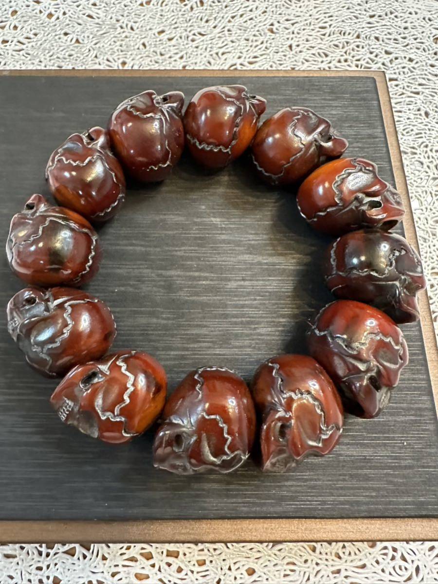 - T-246 文玩 チベット天然 ヤクの角 牛角ブレスレット 魔除け 大玉20mm