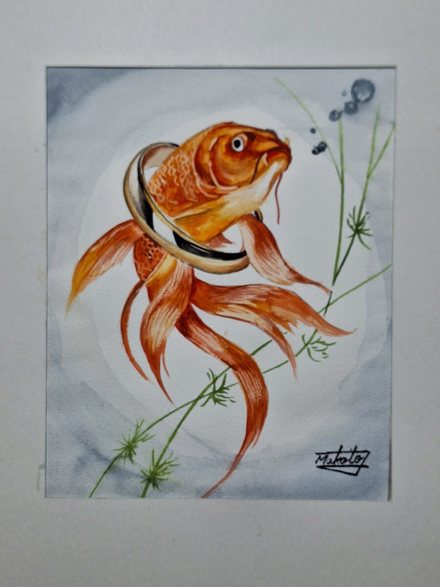 - 水彩画 ゴールドフィッシュ&ゴールドリング