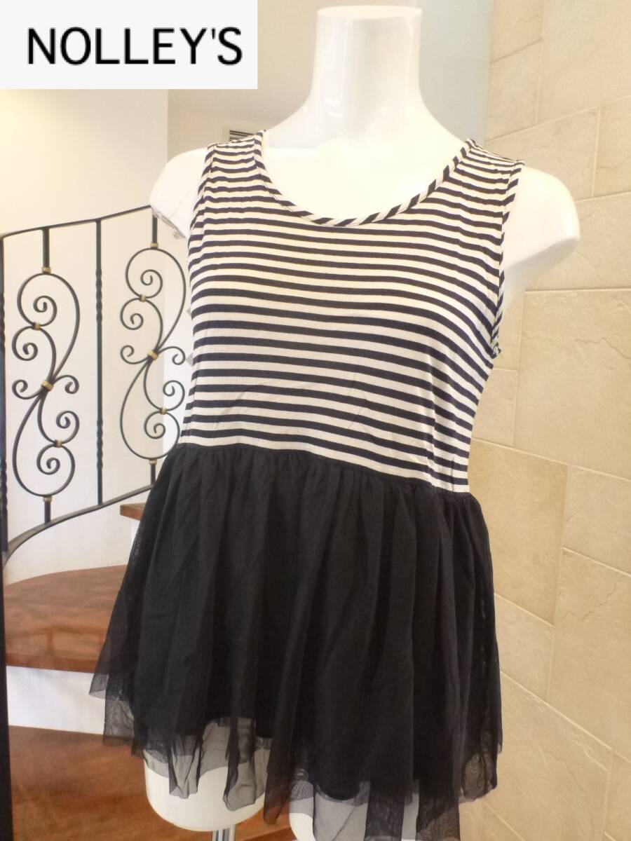 - 1万 美品 NOLLEY'S ノーリーズ ★黒×アイボリー ボーダー 裾チュールレース 38 M相当