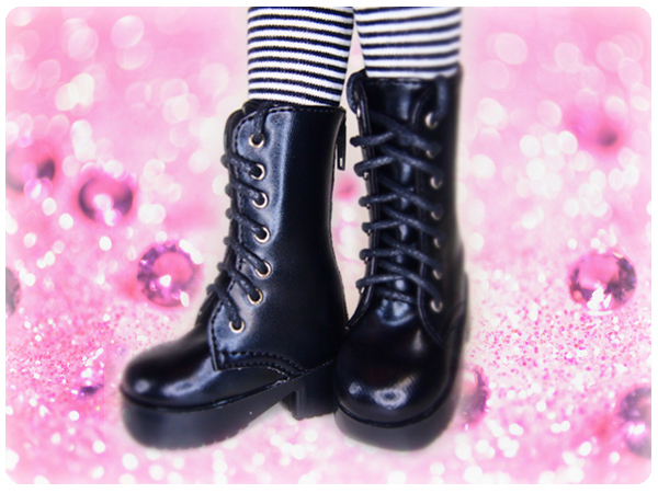 > ●編み上げミドルブーツ*ブラック*MDD/MSD/オビツ50共通サイズ(ドールシューズ内寸:縦 約6.5cm、横 約3.0cm)●
