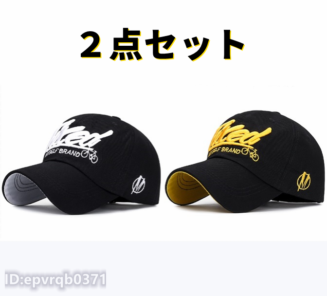 > 2点セット 野球帽 新品 刺繍 英文字 ゴルフキャップ メンズ キャスケット 帽子 柄物 男女兼用 フリーサイズ 調節可能 ゴールド/白