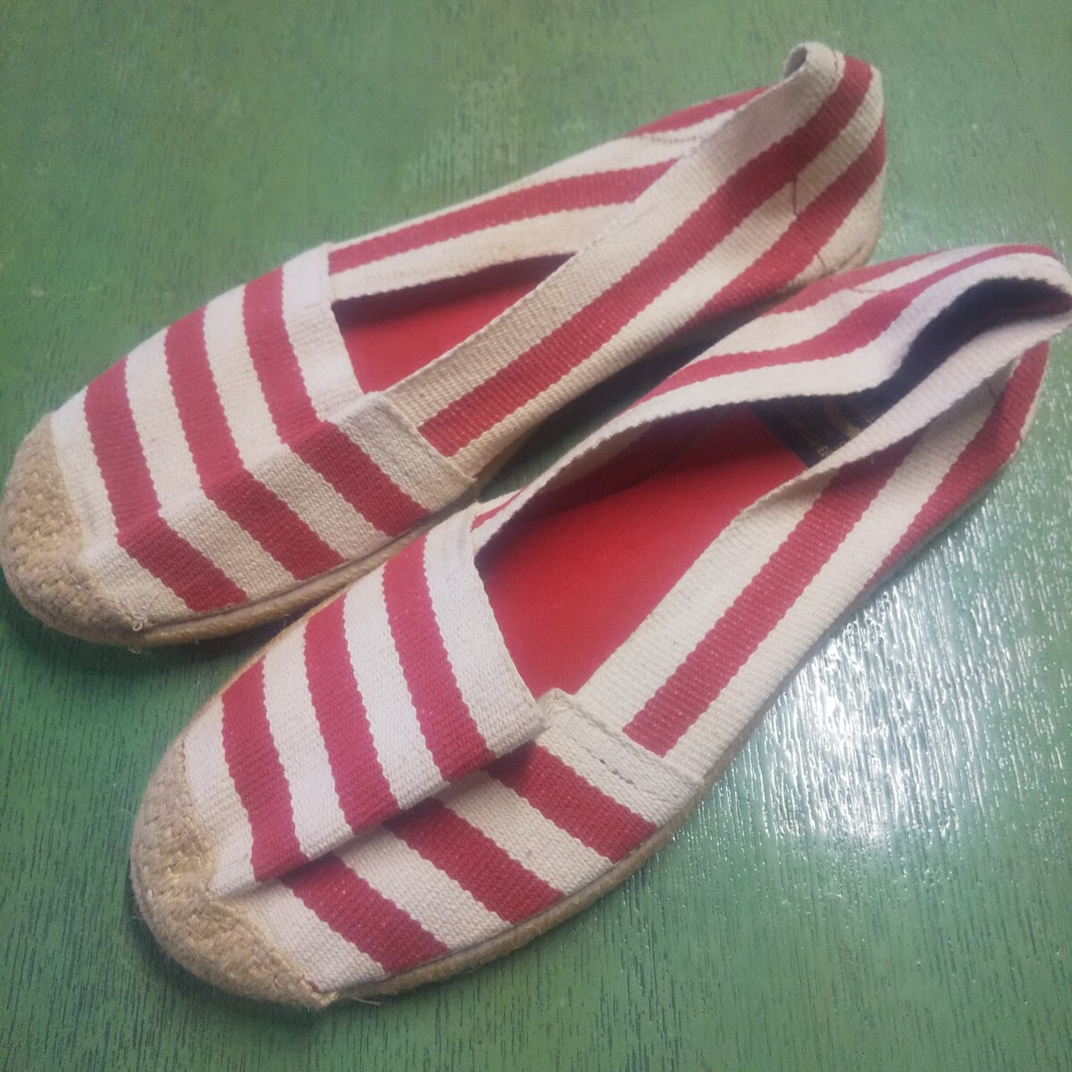 - スペイン製 スリッポン シューズ ストライプ ボーダー 23cm デッキシューズ