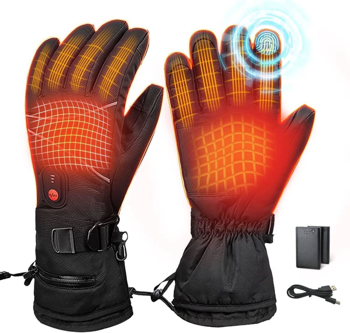 - ヒートグローブ ヒーター手袋 新品 バイク用 電熱手袋 スマホ対応 防寒 バッテリー付 急速発熱 約10秒 3段階温度調節 タッチスクリーン対応