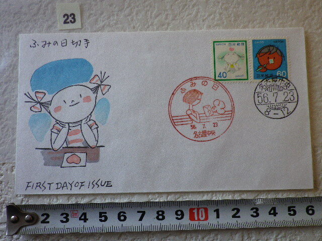 - FDC ふみの日 2貼2消 名古屋中央印 1981年 解説書有 松屋●23●