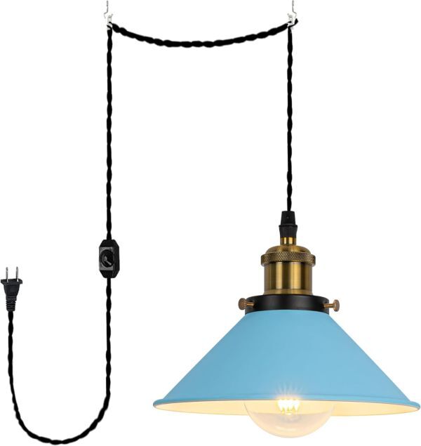 - ケビン ペンダントライト コンセント式 吊り下げライト コードに調光スイッチつき 調光対応 口金E26 電球別売り 直径22cm【ブルー】