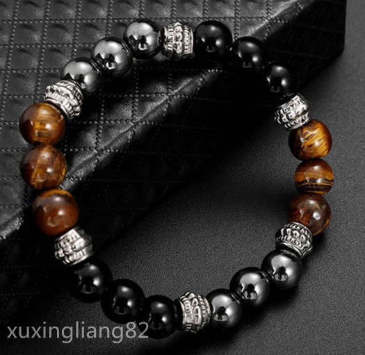- 高級逸品★8ミリブレスレット タイガーアイ&黒胆石&テラヘルツ ミックス メンズ パワーストン お守り 男女兼用 アクセサリー