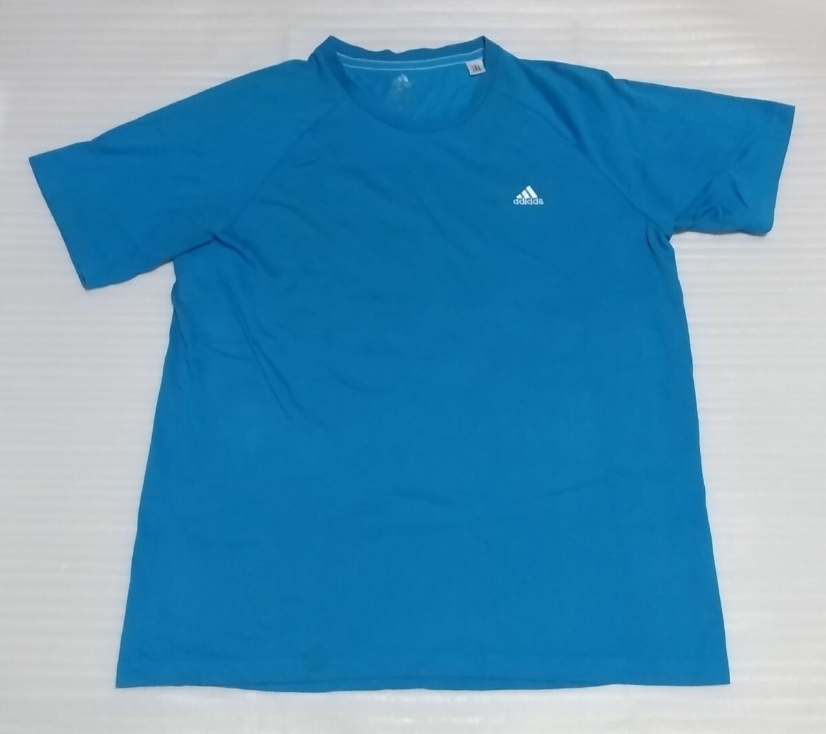 > ☆adidas アディダス サイズ Lジャパン2XO 半袖Tシャツ スポーツ ティー フアッションTEE ライト水色ブルー刺繍ホワイト白色ストレッチ軽量