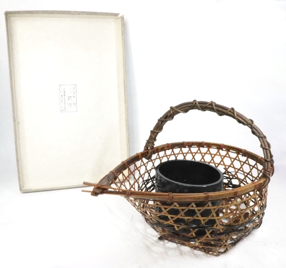 - 昭和ビンテージ 竹工芸品 すだれ・竹 ぎおん西河 花籠「おどり船」1980年代 SMG606