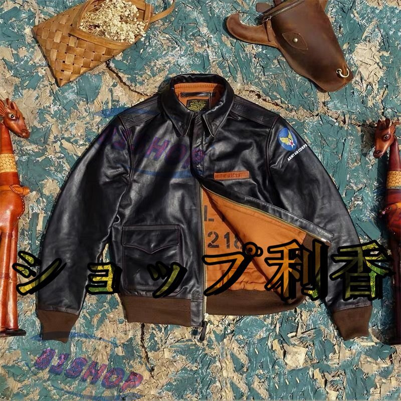 - 1.1mm 茶芯ホースハイド 40\'s TYPE A-2 V. HILTS エンブレム フライトジャケット ブラック Mサイズ 1942大脱走 馬革