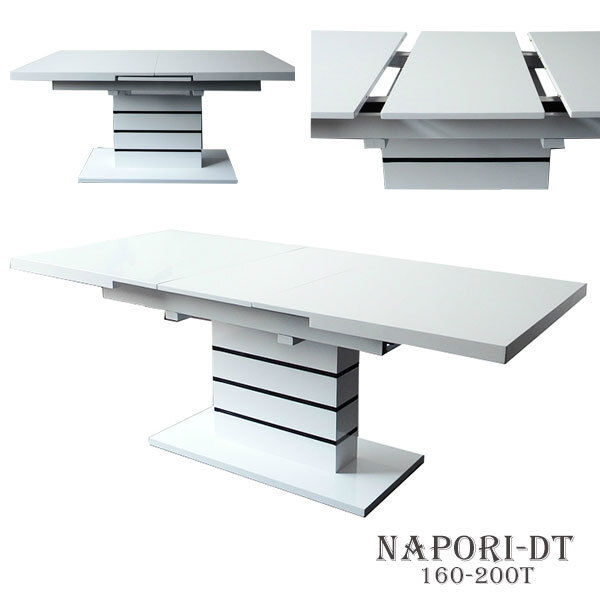 - 【新品】ダイニングテーブル 160-200cm 伸長式 テーブル テーブルのみ モダン エクステンションテーブル ホワイト ナポリ ※送料無料※