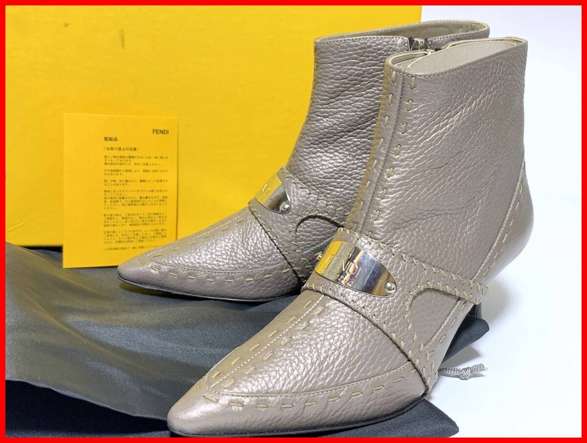 > 即決 展示品 FENDI フェンディ 35≒22cm サイドジップブーツ グレー系 箱付 レザー レディース jcs