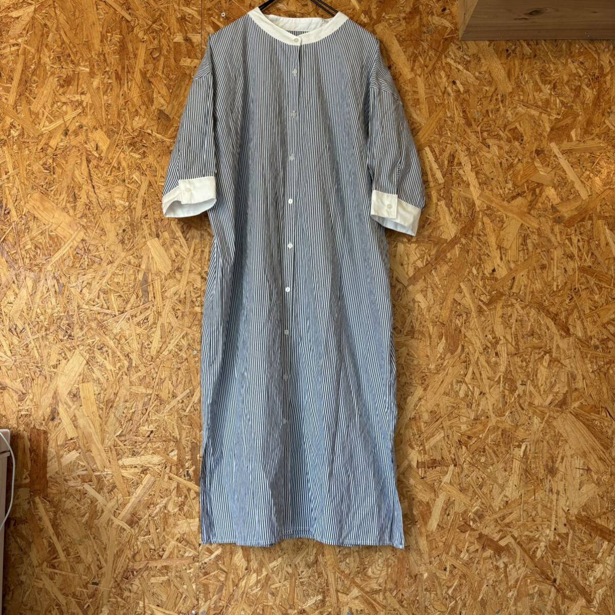 > 美品 Lutique 前ボタン 七分袖ワンピース ストライプ ロングワンピース ゆったり 大きめサイズ シャツワンピース 3241