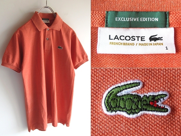 - ネコポス対応 LACOSTE BEAMS ビームス別注 ラコステ PH404P 文字ワニ ビンテージ復刻ロゴワッペン 鹿の子 ポロシャツ 1 キャロットオレンジ