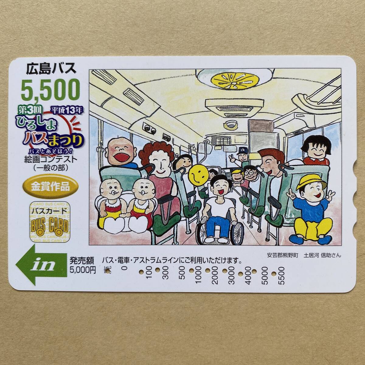 - 【使用済】 バスカード 広島バス 第3回ひろしまバスまつり 絵画コンテスト (一般の部) 金賞作品