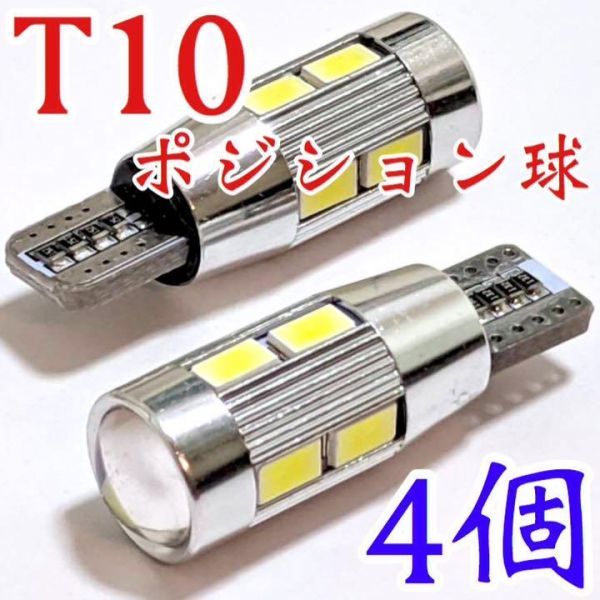 - ホワイト4個◇爆光T10 LED 10連ポジション球 プロジェクターレンズ搭載