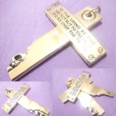- 横浜最新 ペンダントクロス英字ドクロ2連可動型♪魅惑の十字架 50cm チェーン付き Cross守護魔除け 送料220円ξbalnξξネックレス141