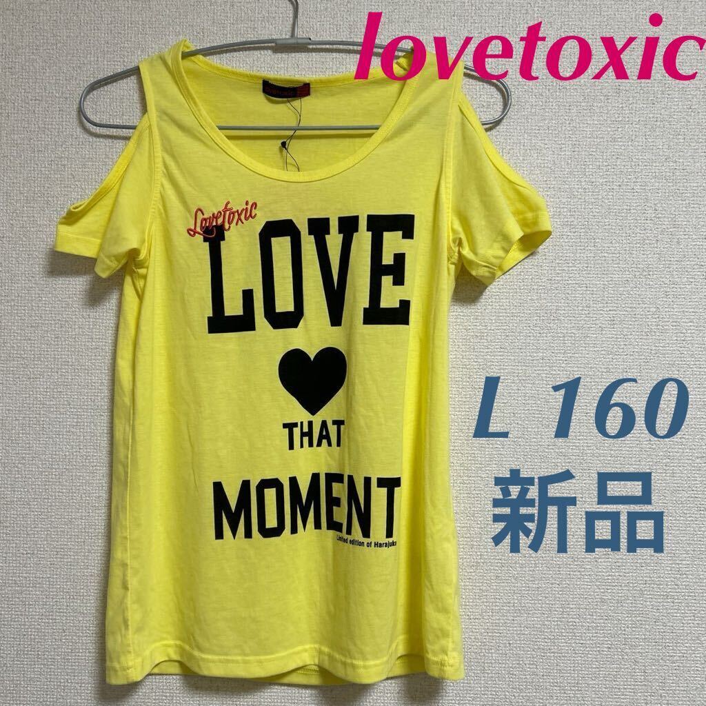 > 新品 lovetoxic ラブトキシック 肩あきTシャツ L 160 イエロー 半袖Tシャツ