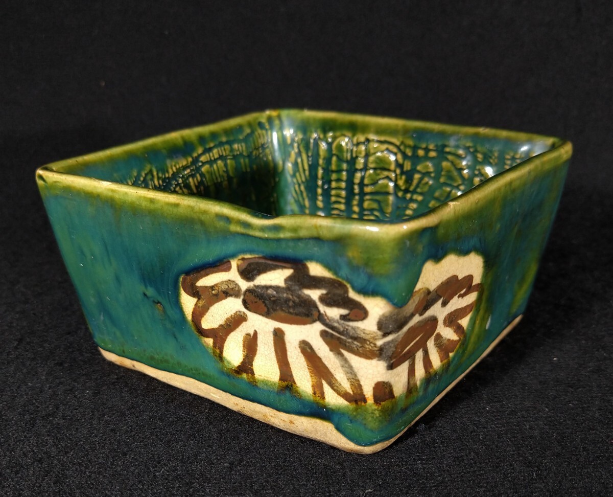- 古い織部焼 花文 10cm 四方 小鉢 向付 b-32a3672