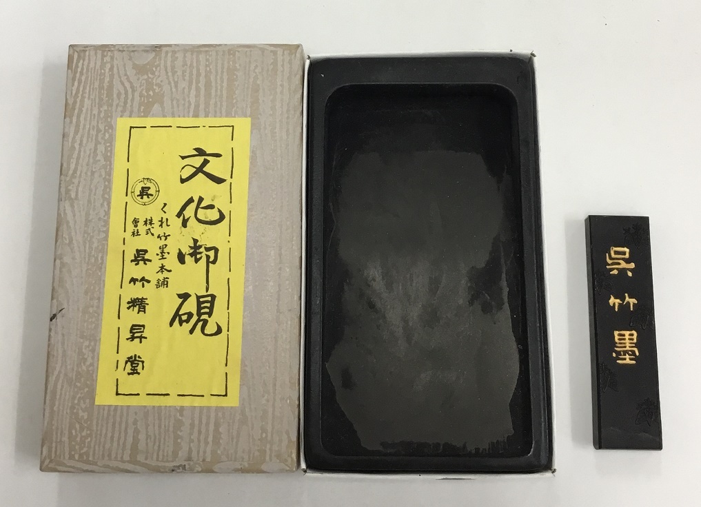 - 文化御硯 硯 固形墨 計2点セットくれ竹墨本舗 呉竹精昇堂 呉竹墨 昭和レトロ アンティーク 中古