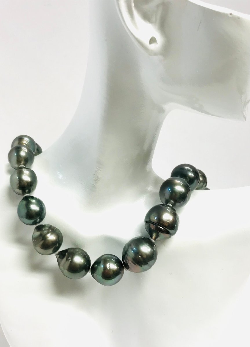 - K14WG ホワイトゴールド 黒蝶真珠 ブラックパール ネックレス 14.0mm玉 ソーティング付き qoj.YOP04