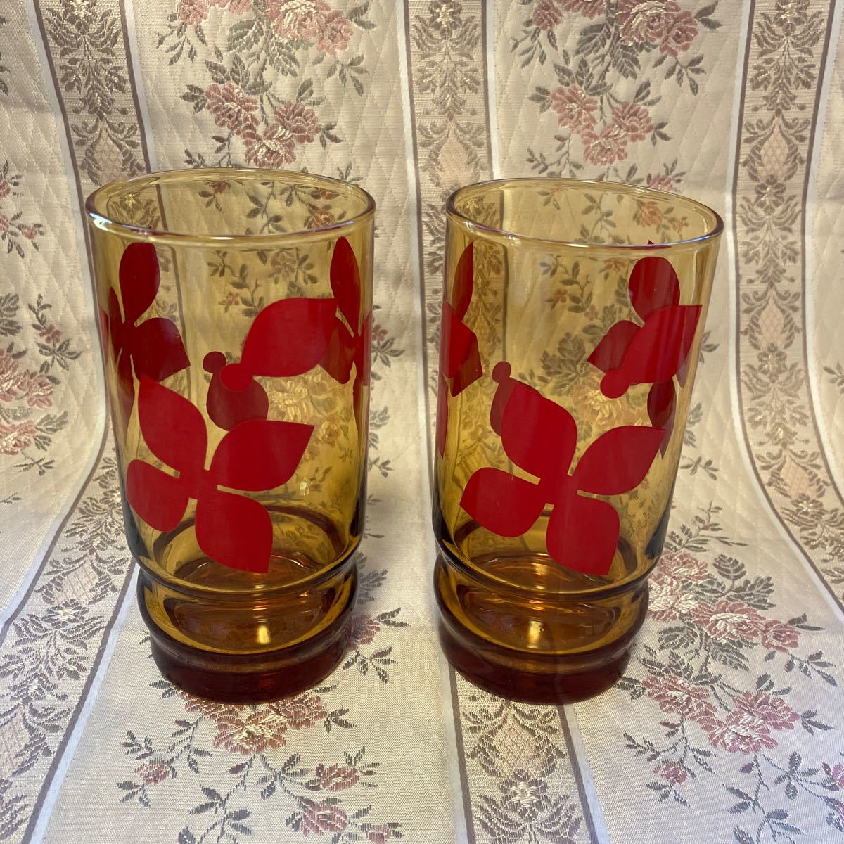 - 昭和レトロ★アデリア 花柄 アンバー タンブラー グラス ペア