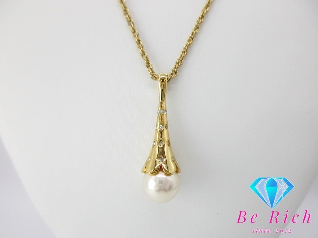 > ニナリッチ NINA RICCI フェイク パール 付 デザイン ネックレス ペンダント ゴールド ロゴ GP メッキ アクセサリー 【中古】 ba2854