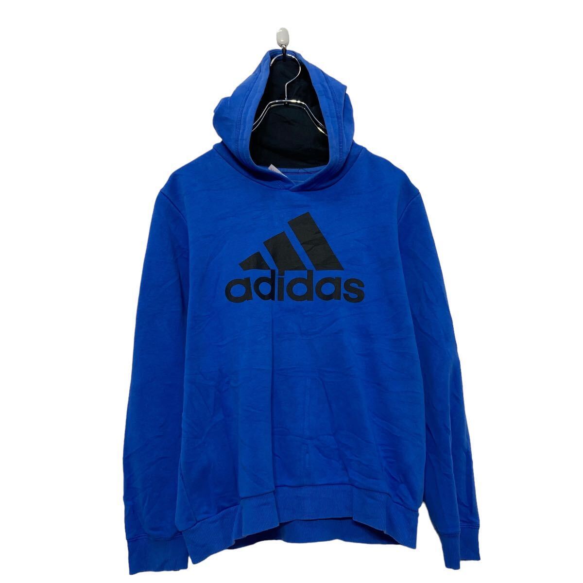 - adidas ロゴ スウェット パーカー アディダス M ブルー キッズ 裏起毛 古着卸 アメリカ仕入 a606-6080