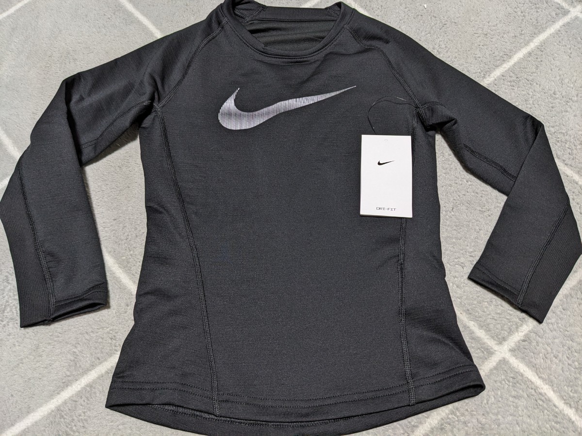 > 新品未使用 NIKE 130 スポーツウェア フットサル ナイキ プラクティスシャツ サッカー ドライフィット DRI-FIT 長袖 インナー ブラック 黒