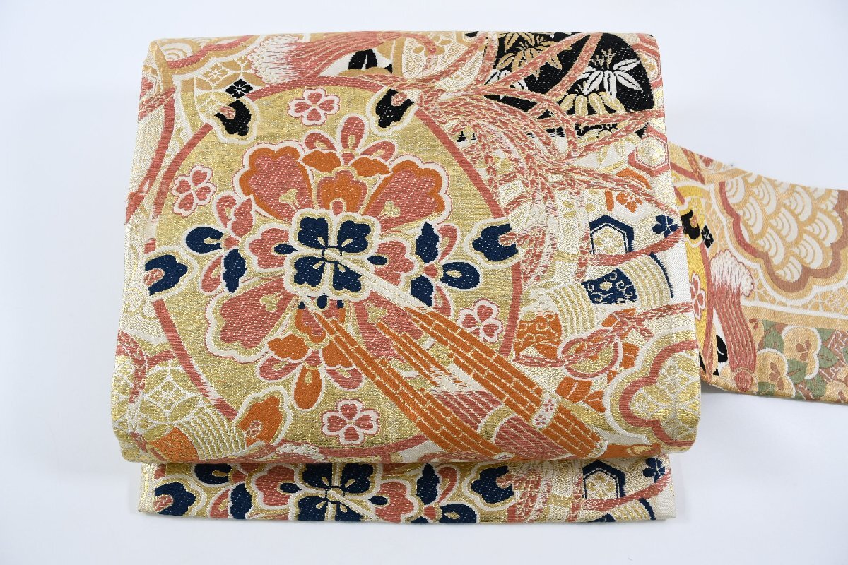 - 名古屋帯 アンティーク 花 鼓 帯丈376cm ★着物屋 ne-10573 桜庭呉服店