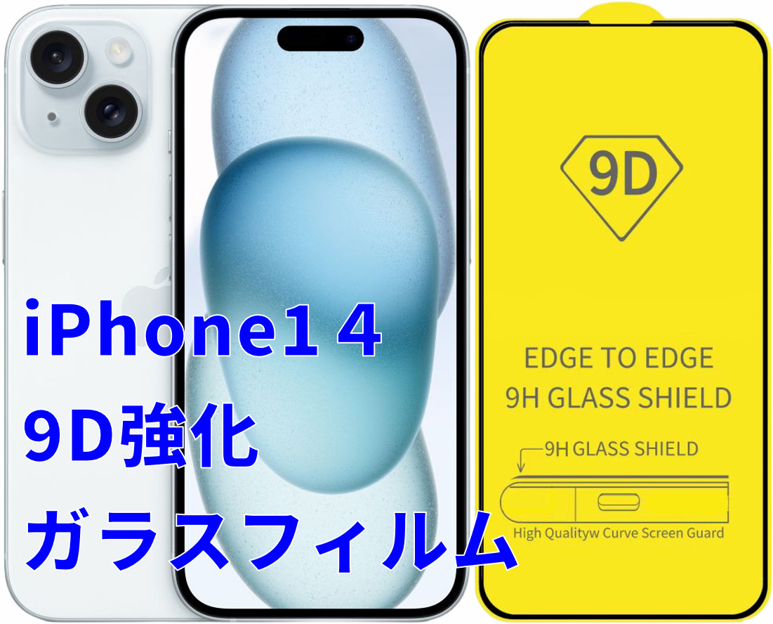 - 2枚セット★iPhone14 強化ガラスフィルム 9Dラウンドエッジ加工 表面硬度9H 高透過率