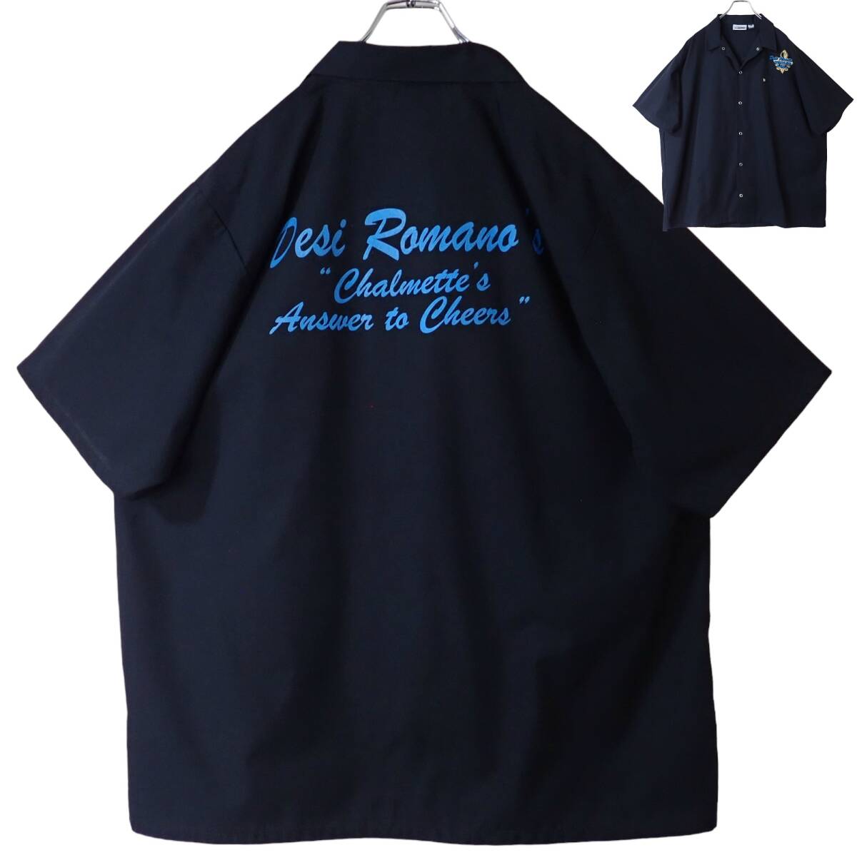 > 5781/美品 Edwards 半袖 ワークシャツ L●Desi Romano's Chalmette's Answer toCheers SPORTS BAR GRILL●洗濯プレス済●ネコポス可●古着