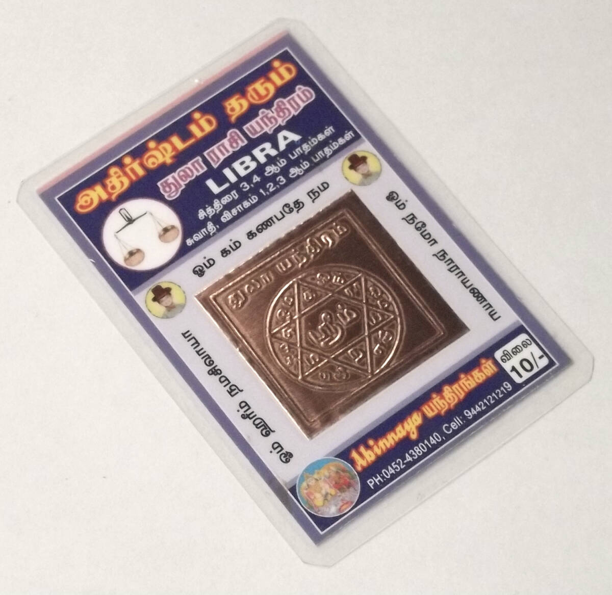 - 古い インド ヒンズー教 天秤座 お守り カード 星占い 占星術 ヒンドゥー教 神様 護符 呪符 曼荼羅 守護神 仏画 タミル語 ラミネート