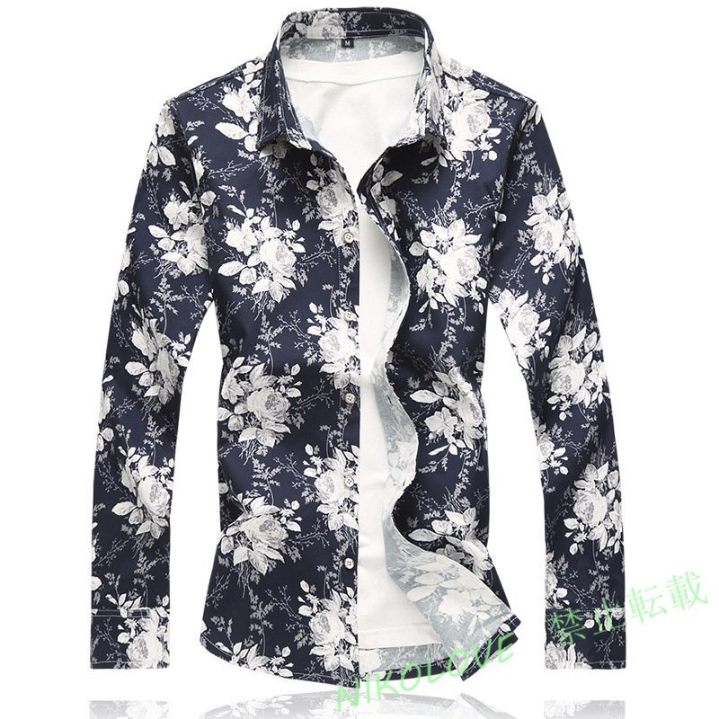 - 新品夏 目玉品 長袖 柄シャツ お洒落 メンズ 花柄シャツ 長袖シャツ カジュアル アロハシャツ 8色【M~7XL】大きいサイズ LD098