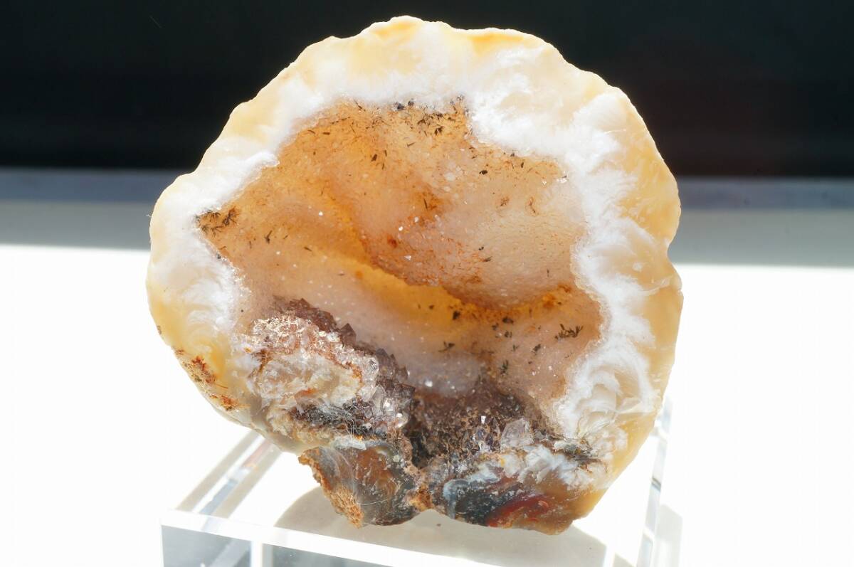 > 【特別即決価格!早い者勝ち】30年前の希少在庫!アゲートジオード・ドーム水晶、石英クラスターが神秘的(メノウ・瑪瑙) 鑑賞石 鉱物50g