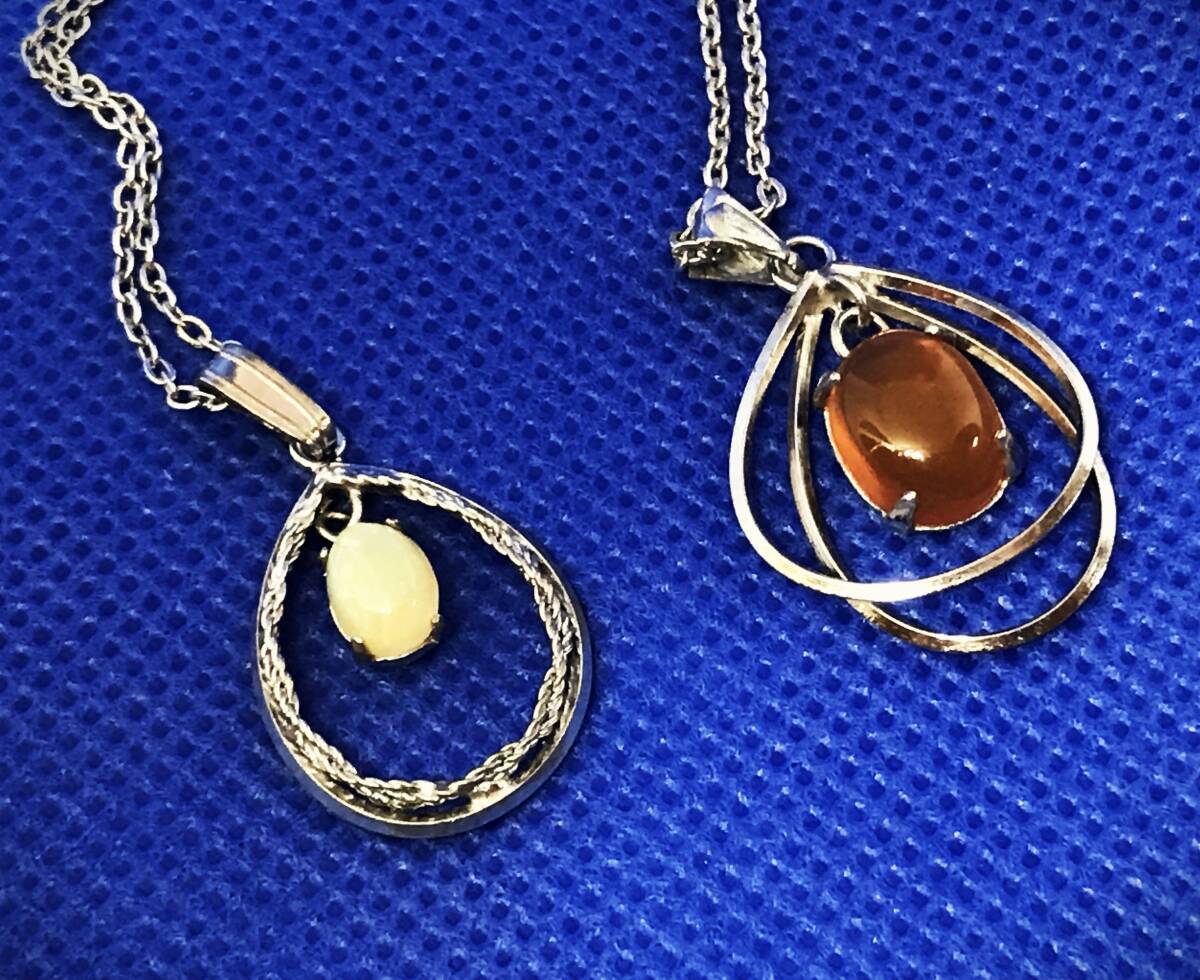 - 【イギリス・ロンドンの市場で購入】1970年代 オーバル サークル ドロップペンダント 2種セット シルバー 銀縁 アンティーク 中古
