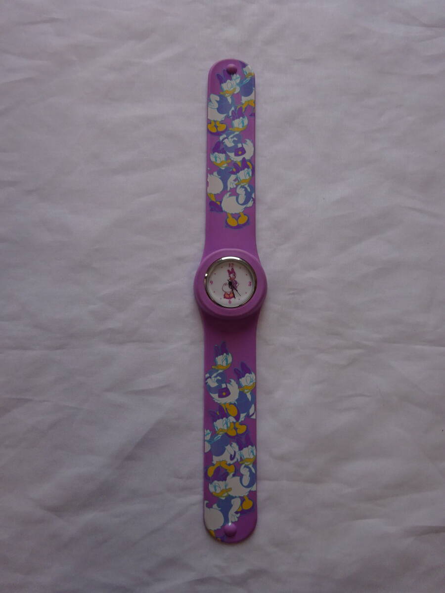 - ★☆D-1670 Disney ディズニー デイジー 腕時計 パッチン ラバー 紫 パープル ジャンク品☆★