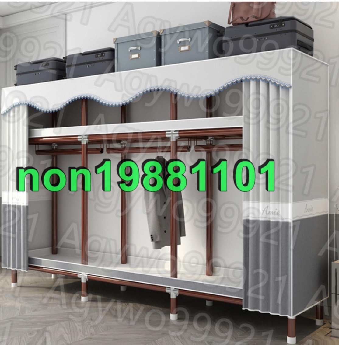 > ワードローブ カバー付き 大容量 クローゼット 磁気吸着カーテン 多機能 衣類収納ラック 洋服掛け ハンガーラック 頑丈 耐荷重強い 200CM